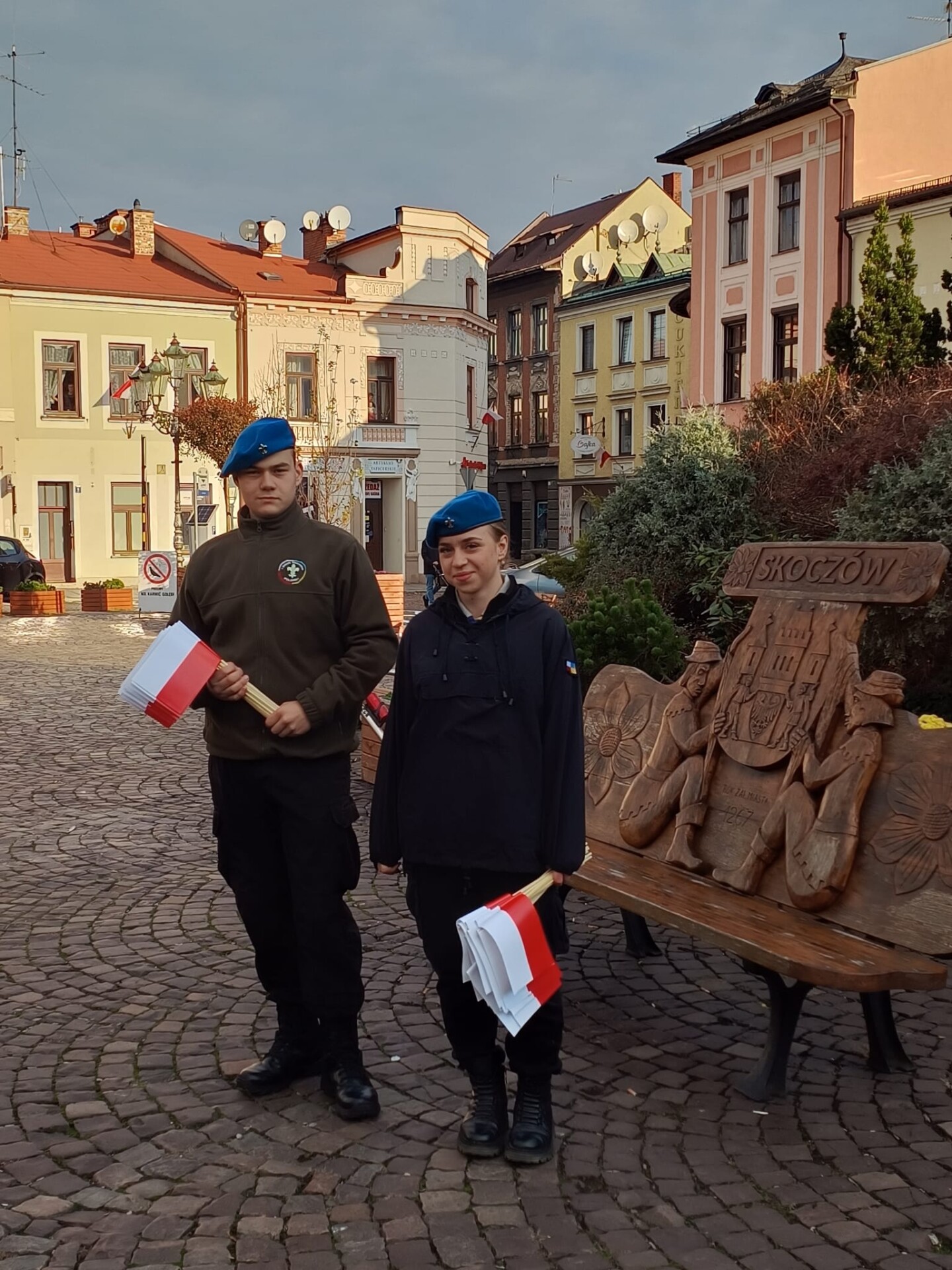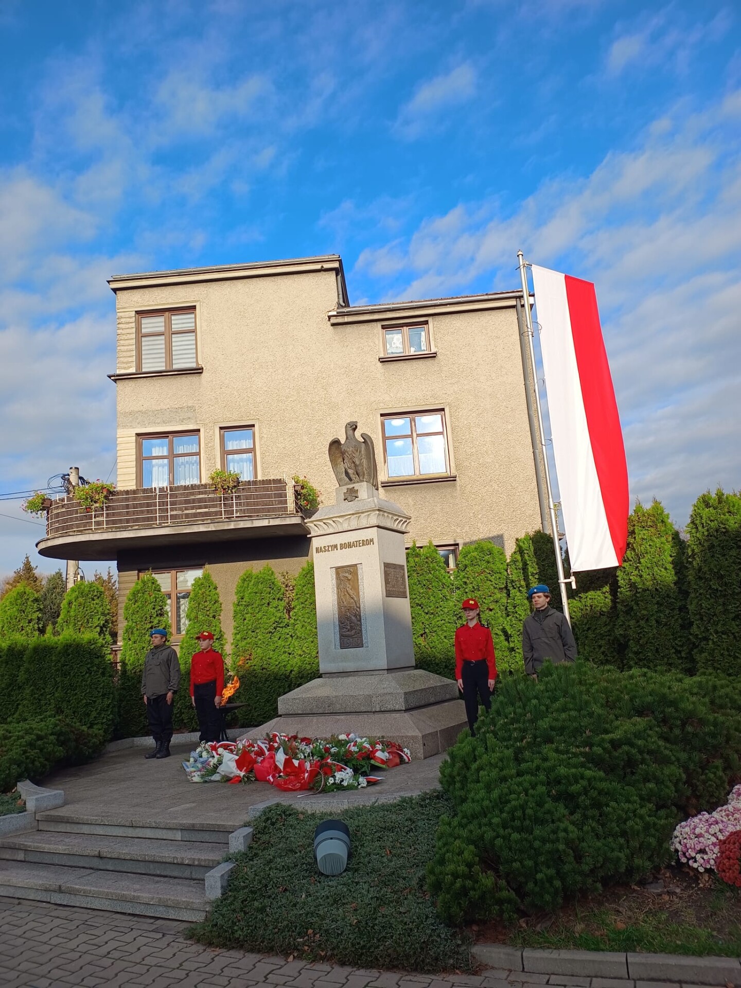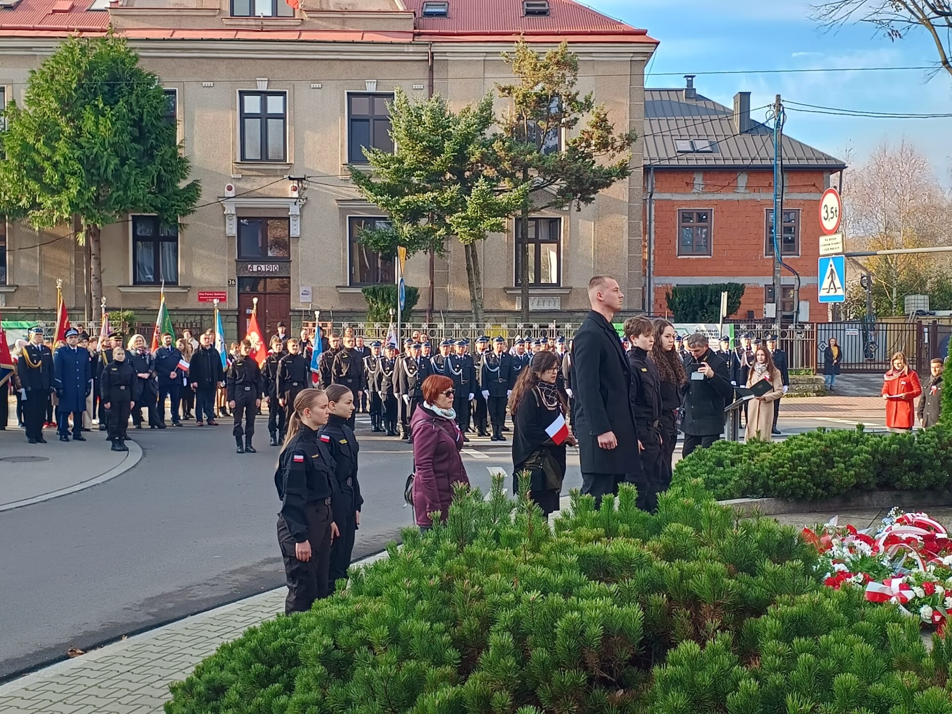 W miejskich uroczystościach na Rynku wystąpiła grupa młodzieży z klas LO o profilu ratowniczo-pożarniczym, która włączyła się w przemarsz wraz z kompanią honorową OSP Gminy Skoczów z Rynku pod Pomnik przy ul. Mickiewicza. Tam, przy Pomniku „Naszym Bohaterom”, złożono kwiaty. Wartę honorową pod monumentem pełnili harcerze ze szkoły,