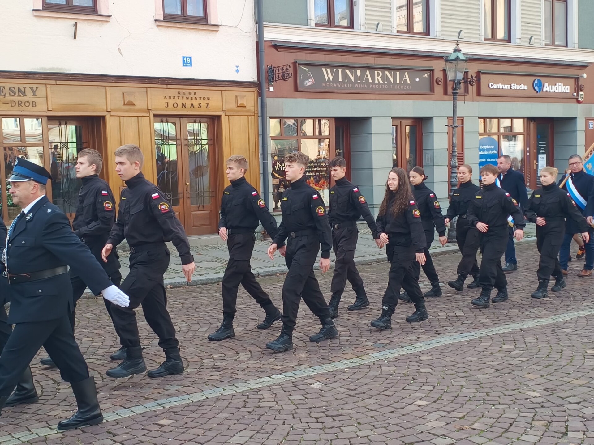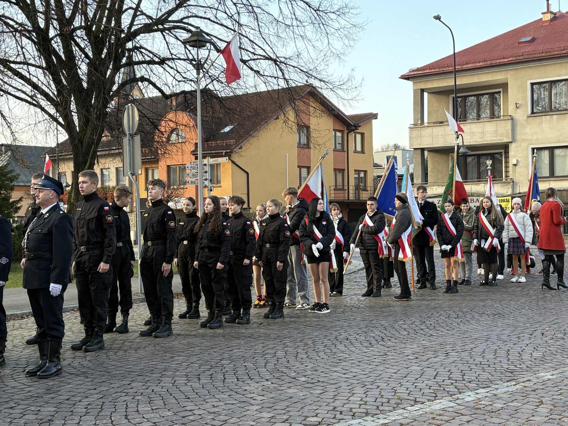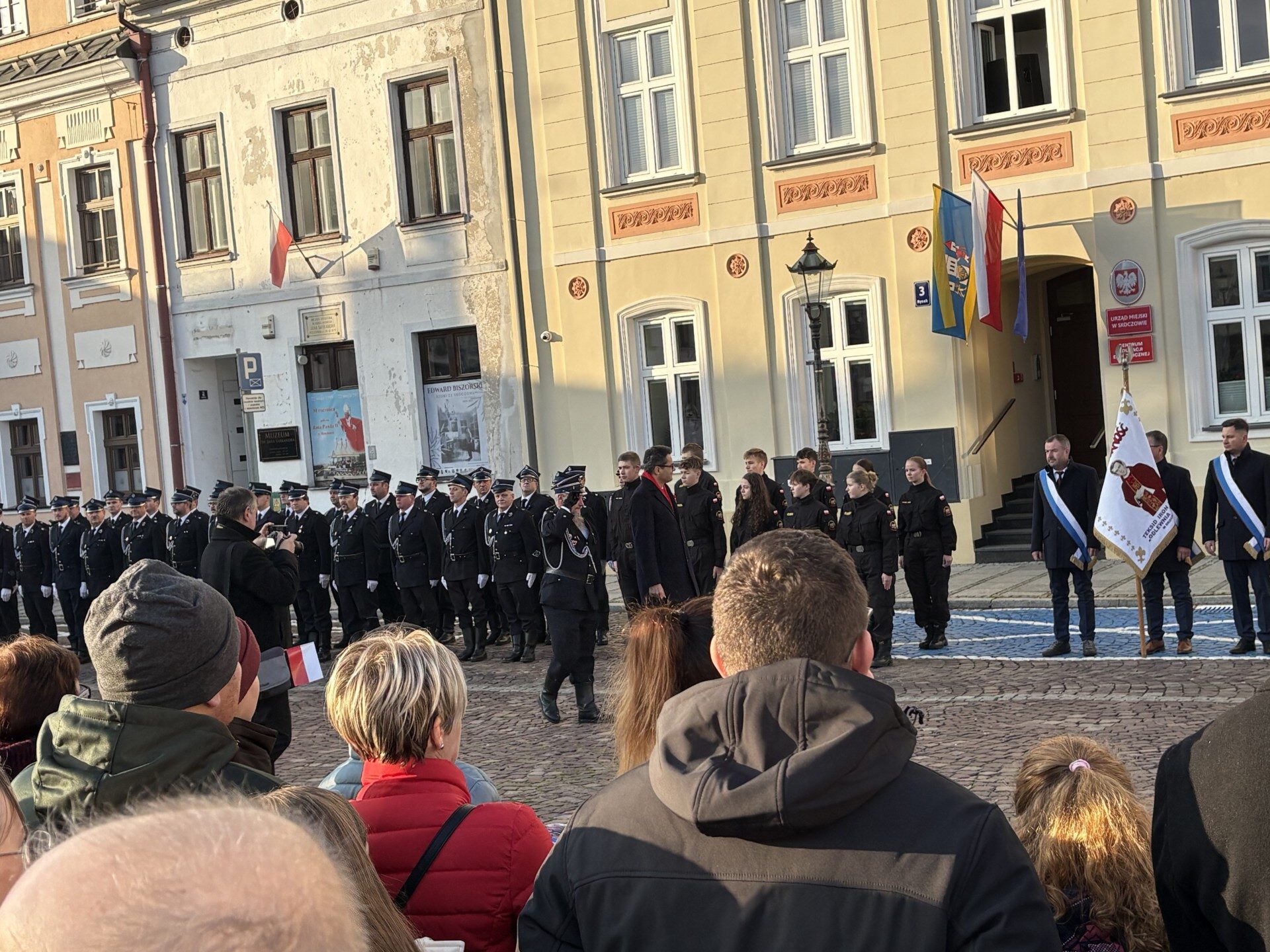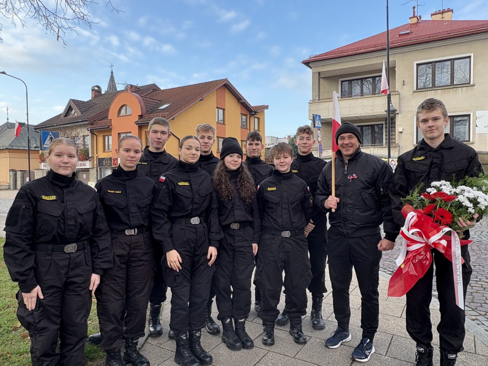 W miejskich uroczystościach na Rynku wystąpiła grupa młodzieży z klas LO o profilu ratowniczo-pożarniczym, która włączyła się w przemarsz wraz z kompanią honorową OSP Gminy Skoczów z Rynku pod Pomnik przy ul. Mickiewicza. Tam, przy Pomniku „Naszym Bohaterom”, złożono kwiaty. Wartę honorową pod monumentem pełnili harcerze ze szkoły,