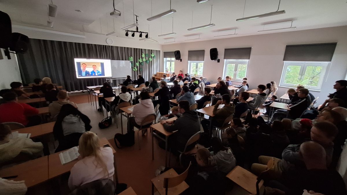 W dniu 30. września, o godz. 8.00 młodzież naszego ZSTiO uczestniczyła w telekonferencji z polskim astronautą, dr. Sławoszem Uznańskim-Wiśniewskim, który przebywał na Targach EXPO w Japonii. Lekcja on-line została zorganizowana przez Fundację Warszawski Instytut Bankowości, która jest współorganizatorem polskiego stanowiska na wystawie w Japonii.